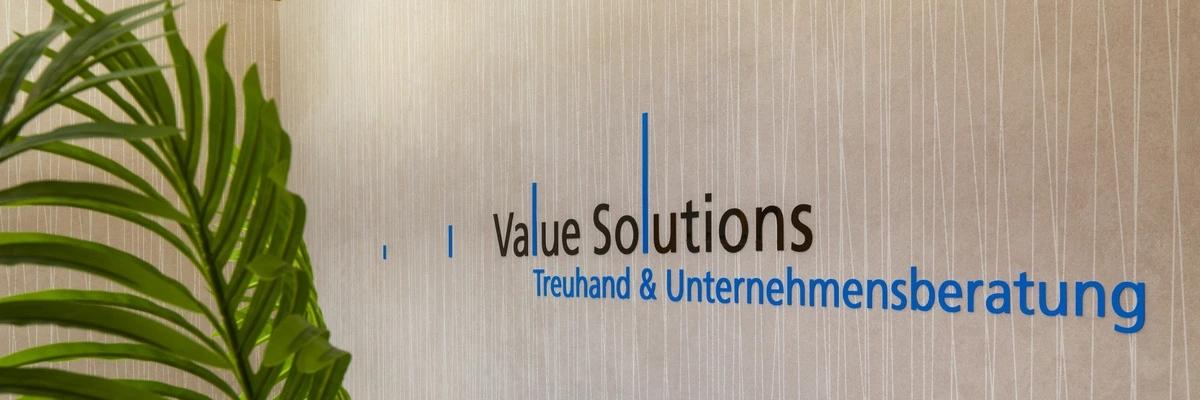 Value Solutions ist eine Treuhandgesellschaft, mittlerer Grösse. Für eine sehr breite Palette von Kunden aus sehr unterschiedlichen Branchen werden die klassischen Treuhanddienstleistungen erbracht, wie Buchführung, Abschlusserstellung, Salär Administration, Steuer- und Unternehmensberatung. Value Solutions betreut überdurchschnittlich viele Start-up Gesellschaften, mit teilweise internationaler Ausrichtung. Unsere Gesellschaft beschäftigt gegenwärtig knapp 30 Mitarbeitende.