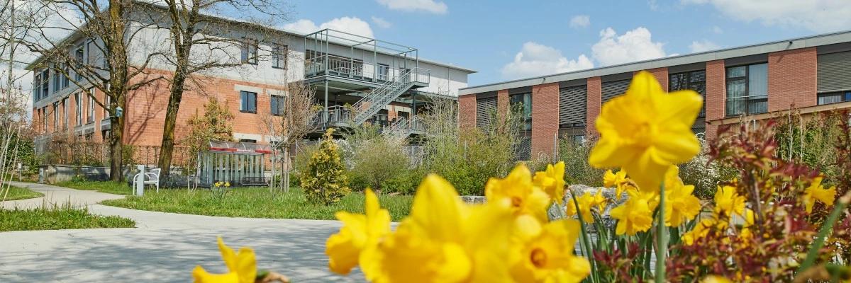 «Zäme witercho» Im Zentrum Schlossmatt setzen sich rund 300 Mitarbeitende aus den verschiedensten Bereichen täglich für das Wohl von 186 Bewohnenden ein. Unser Pflegezentrum ist spezialisiert auf die komplexe Pflege von Menschen mit Mehrfacheinschränkungen, auf die Demenzpflege sowie auf rasche Notfallaufnahmen und Kurzaufenthalte zur Übergangs- oder Rehabilitationspflege. Nebst unserem vielfältigen Therapieangebot finden sich unter unserem Dach auch ein Tageszentrum, eine Kita und ein Restaurant für generationenübergreifende Begegnungen.