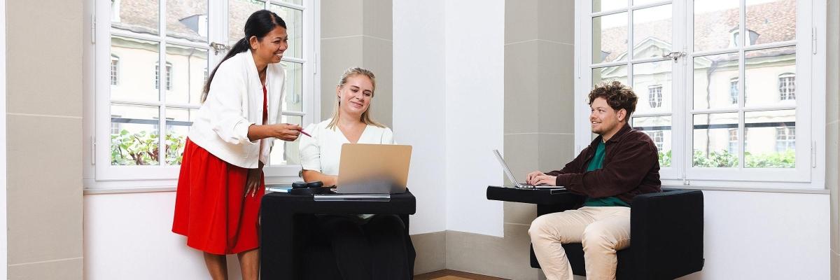 - Bei uns kannst du dich auf bereichsübergreifende Austauschformate freuen - von monatlichen Infoveranstaltungen bis hin zu regelmässigen Mitarbeitendenanlässen, die den Austausch fördern und das Miteinander stärken.